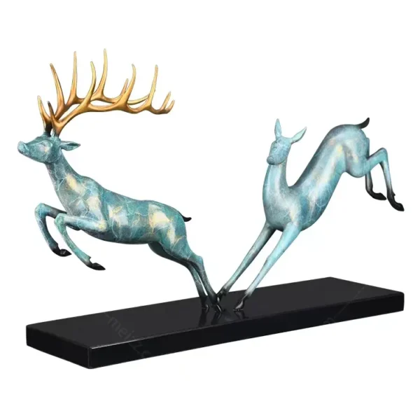 This is bronze stag and doe. This is a pair of bronze male deer and female deer. They are like elves in the forest, running freely in the forest. The golden antlers of the stag and the pale blue body of the mother deer give them a mysterious legendary color.