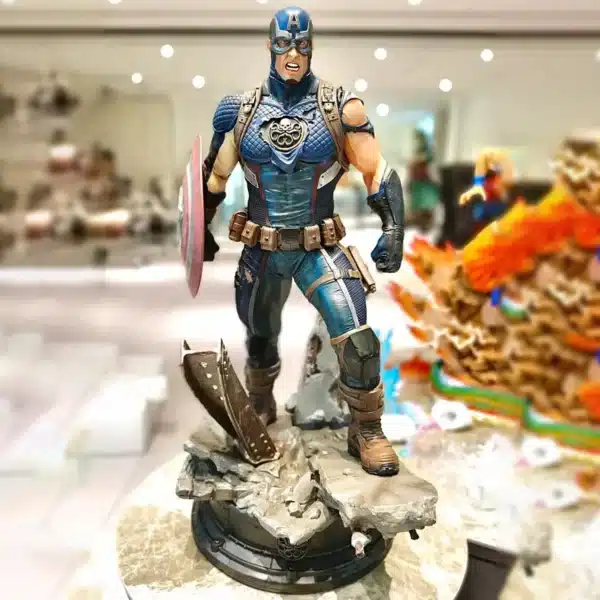 The sideshow endgame captain america held up his iconic shield, symbolizing his courage and determination to protect justice. The other hand clenched into a fist, demonstrating his unwavering determination to face difficulties. His mouth opened, revealing sharp teeth, revealing his resolute resistance to the enemy. Every detail in the sculpture showcases the unique qualities of Captain America as a superhero.